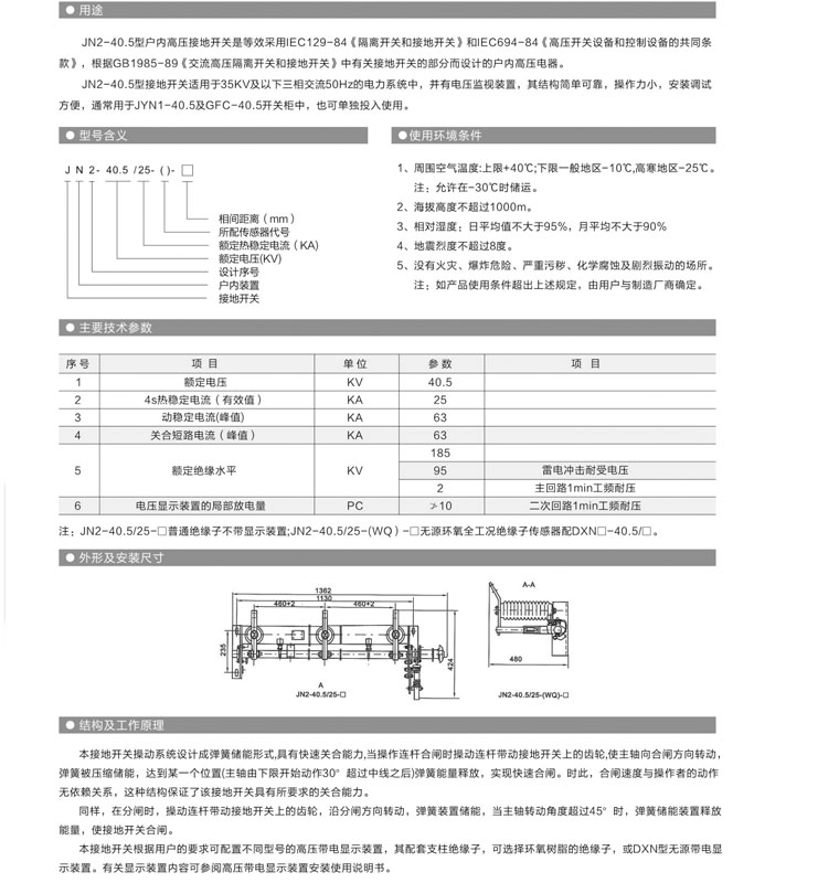• JN2-40.5型戶內高壓接地開關